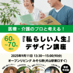 - 2025.9.11(木)愛知県・犬山市で『60代・70代向けキャリア支援 私らしい人生 デザイン講座』を開催します。