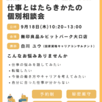 - 2025.9.18(木)無印良品ルビットパーク大口で『仕事とはたらきかたの個別相談会』を開催!