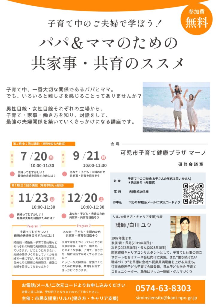 この課題に正面から向き合い、子どもへのゆとりを持った関わり、安心できる家庭づくり、パパの育児参加のきっかけ作り、パパママの自分らしいキャリアづくりに貢献します。